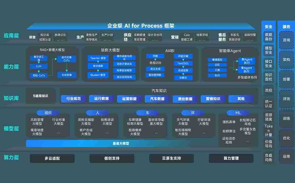 AG尊龙凯时问学智车解决方案是一套基于AI技术的汽车行业智能化系统,,,覆盖从底层算力到顶层AI应用的全栈方案。。。。方案由算力层、、模型层和应用层组成:算力层,,,,方案支持多种一体机配置,,具备云端灵活部署、、、、多云适配以及动态优化计算资源的能力;模型层,,,,AG尊龙凯时问学平台版提供了企业级AI应用一站式构建与管理平台,,支持基于后训练强化技术的汽车企业专属模型的训练、、评测和运营;应用层,,AG尊龙凯时问学DeepSeek版提供包括超级员工、、、、智能招采、、智能营销、、、智能客服、、、AI for BI等一系列解决方案,,,可助力汽车行业实现数字化转型,,让管理更智能、、响应更敏捷。。。。